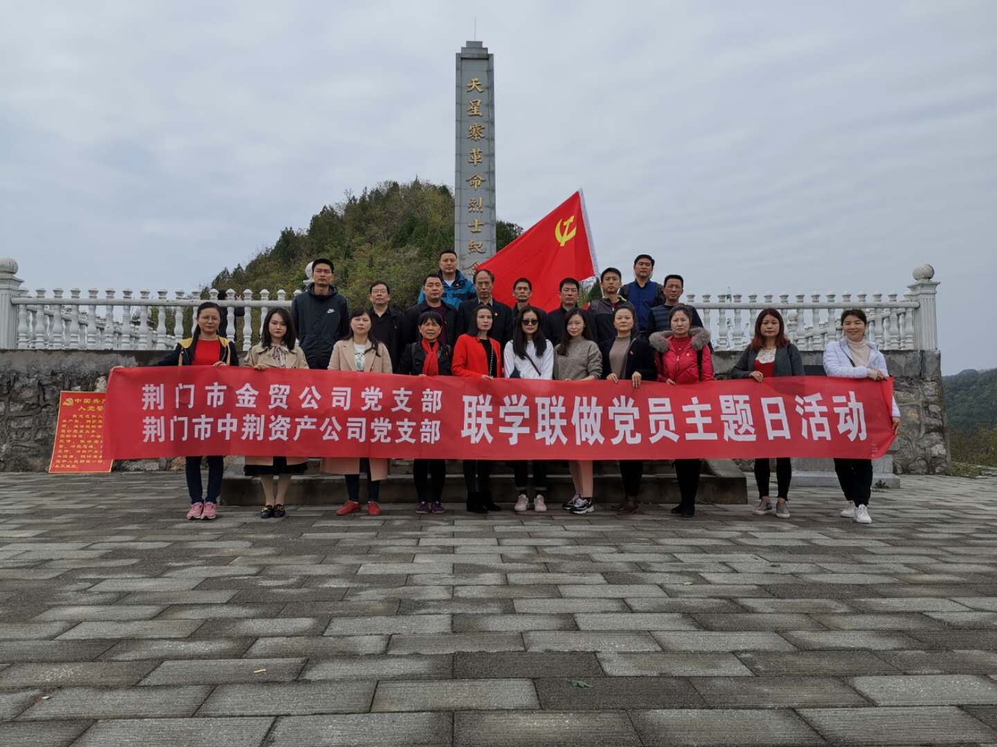 2019年4月3日(星期三)上午,市中荊資產公司機關支部、市金貿公司機關支部組織全體黨員在荊門市仙居鄉(xiāng)天星寨革命烈士紀念碑聯(lián)合開展了2019年4月份聯(lián)學聯(lián)做主題黨日活動。該活動以“學習貫徹全國‘兩會’精神、開展國家安全專題學習、學習‘共產黨員不準信仰宗教’及開展形式多樣的革命傳統(tǒng)教育”等為主題的2019年第4個“黨員主題活動日”學習大會。